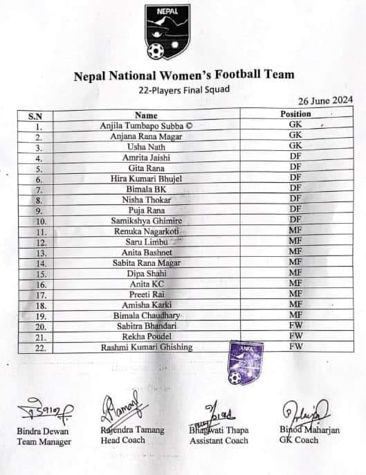 नेपालले जुलाई १० मा जोर्डनसँग, जुलाई १३ मा बङ्लादेश र जुलाई १६ गते लेब्नान्सँग खेल खेल्ने छ । टोलीकै कान्छी खेलाडीको रुपमा रहेकी राई मैदान फर्किने भएपछि नेपाली महिला टिम अब्बल देखिएको छ । साथै महिला फुटबलका फ्यानहरुमा नेपालले यो खेल जित्ने उत्साह जागेको छ ।